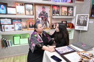Leyla Əliyeva şəhidin ailə üzvlərinə hədiyyələr təqdim edib, onlarla şəkil çəkdirib.