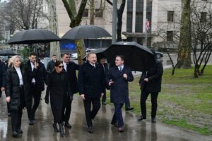 Serbiya Respublikasında rəsmi səfərdə olan Azərbaycan Respublikasının Prezidenti İlham Əliyev və birinci xanım Mehriban Əliyeva fevralın 15-də Belqraddakı Taşmaydan parkında Ümummilli Lider Heydər Əliyevin və görkəmli serb yazıçısı Milorad Paviçin abidələrini ziyarət ediblər.